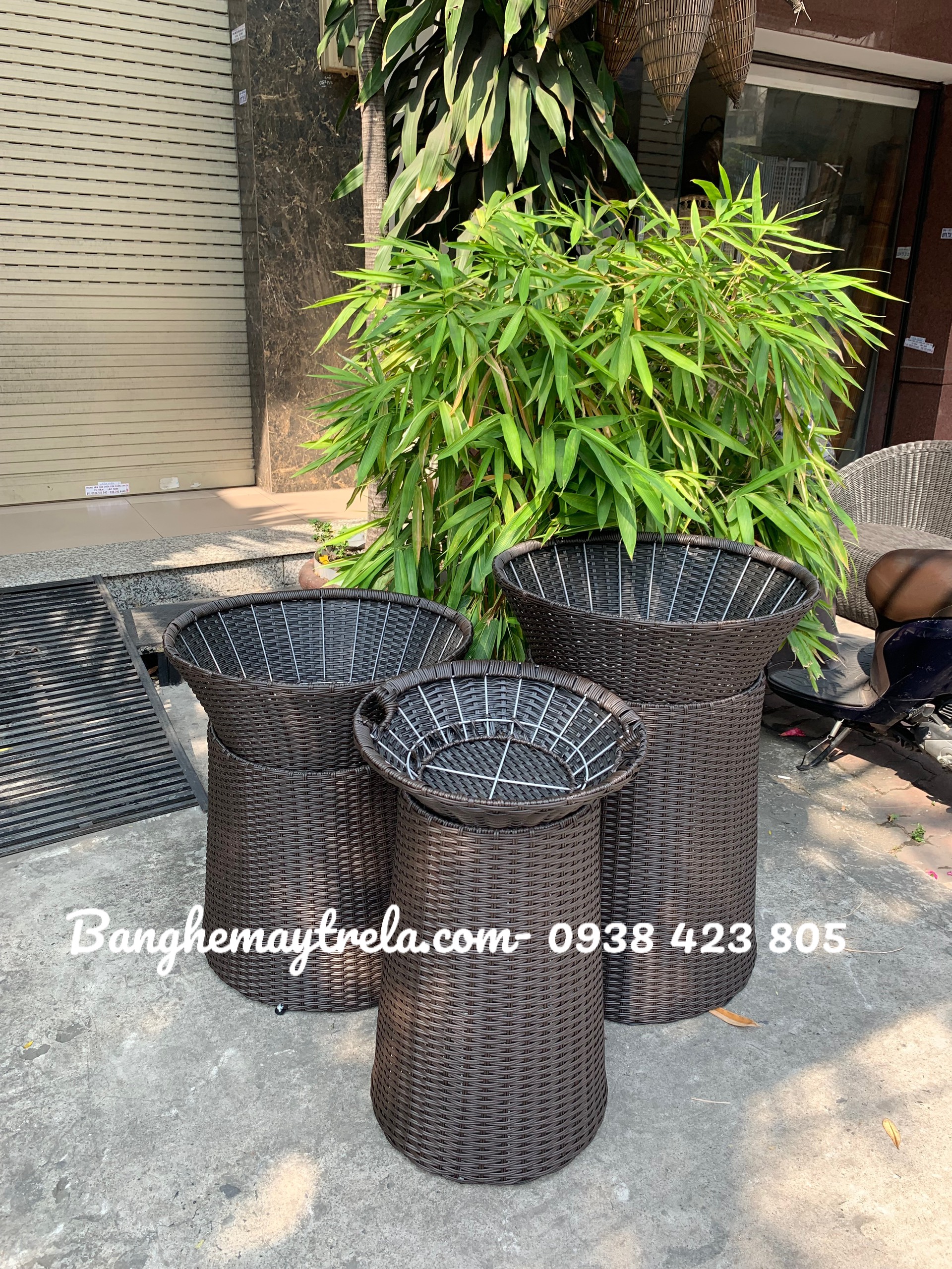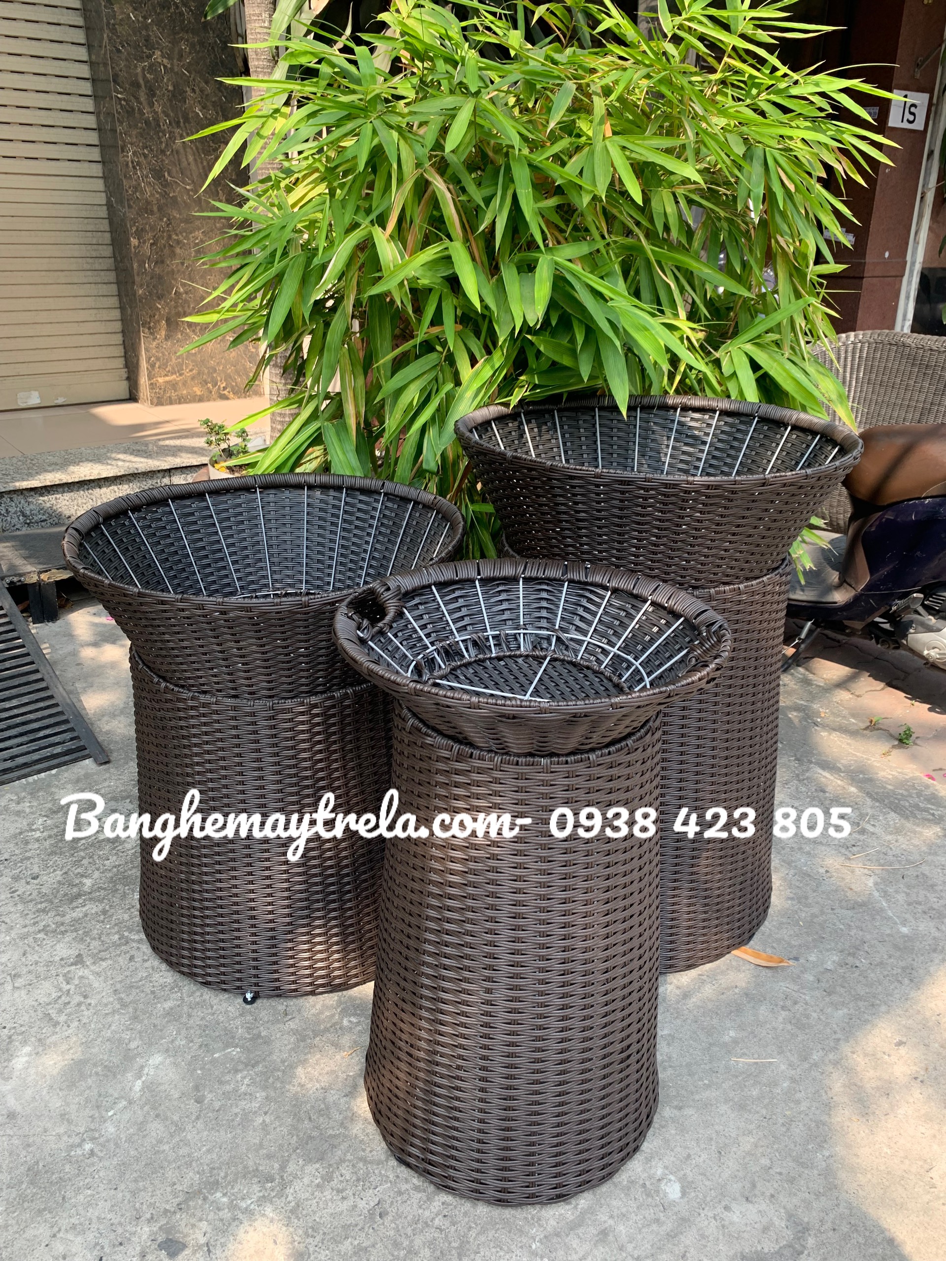 - Mô tả: MÂY TRE LỤC BÌNH vẫn nhận đặt sản xuất sll và nhỏ lẻ sản phẩm: GIỎ ĐỰNG TRÁI CÂY CHO SIÊU THỊ Bộ khay trưng bày trái cây, sọt trưng bày hoa quả, sọt trưng bày trái cây, giỏ trưng bày hoa quả, khay đựng rau củ, hoa quả, bánh kẹo, hàng khô… bằng NHỰA GIẢ MÂY phục vụ các cửa hàng trái cây nhập khẩu, siêu thị, big C .... - Một bộ giỏ đựng trái cây bao gồm 1 sọt trưng bày phía trên và 1 đế rỗng ( có thể đan kín đáy ). - Hình dáng: tròn/vuông. - Kích thước: sản xuất theo yêu cầu. - Đa dạng màu sắc: nâu, đen và vàng giả mây là ba màu phổ biến nhất. - Sợi dây nhưạ dày dặn cùng khung sắt chịu lực tốt >40kg. - Phần đế có thể lật 2 đầu, hai phần tách biệt giúp khách hàng dễ dàng vệ sinh, di chuyển. Lh: 0938 423 805 (zalo) Đc: 1s Đinh Bộ Lĩnh, p15, Q. Bình Thạnh, HCM Xem thêm các mẫu khác tại: www.banghemaytrela.com